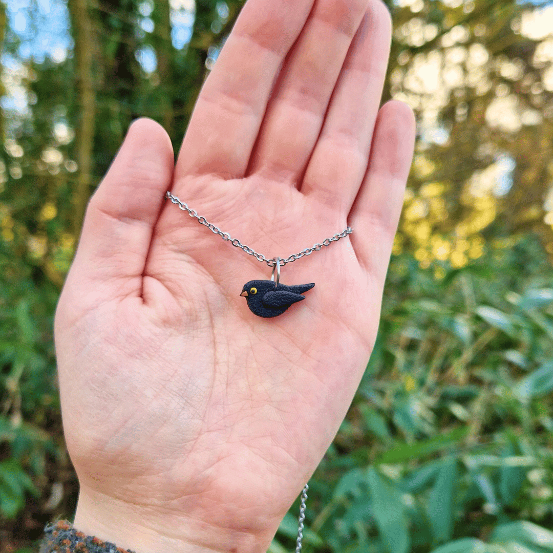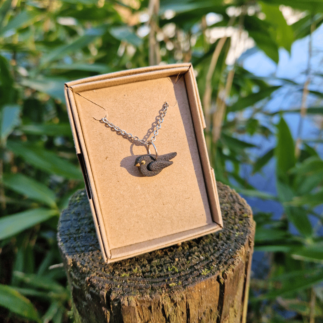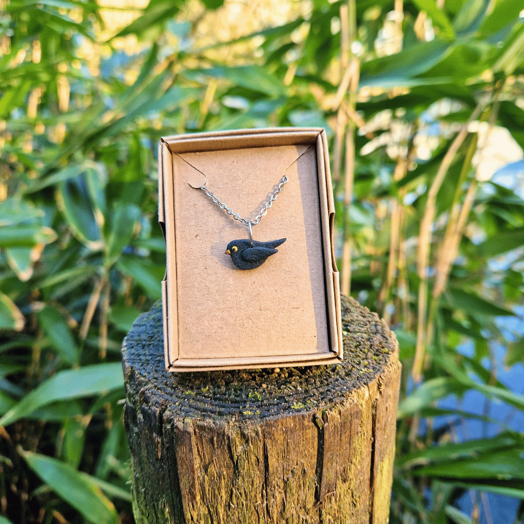 With its calming and joyful harmonious song, the Blackbird is a well-loved British bird, so why not celebrate it with this intricate and detailed necklace! With each element of this piece being meticulously hand shaped, textured and detailed, this is the perfect piece of jewellery for nature and bird lovers alike! All of our necklaces come boxed as standard.
