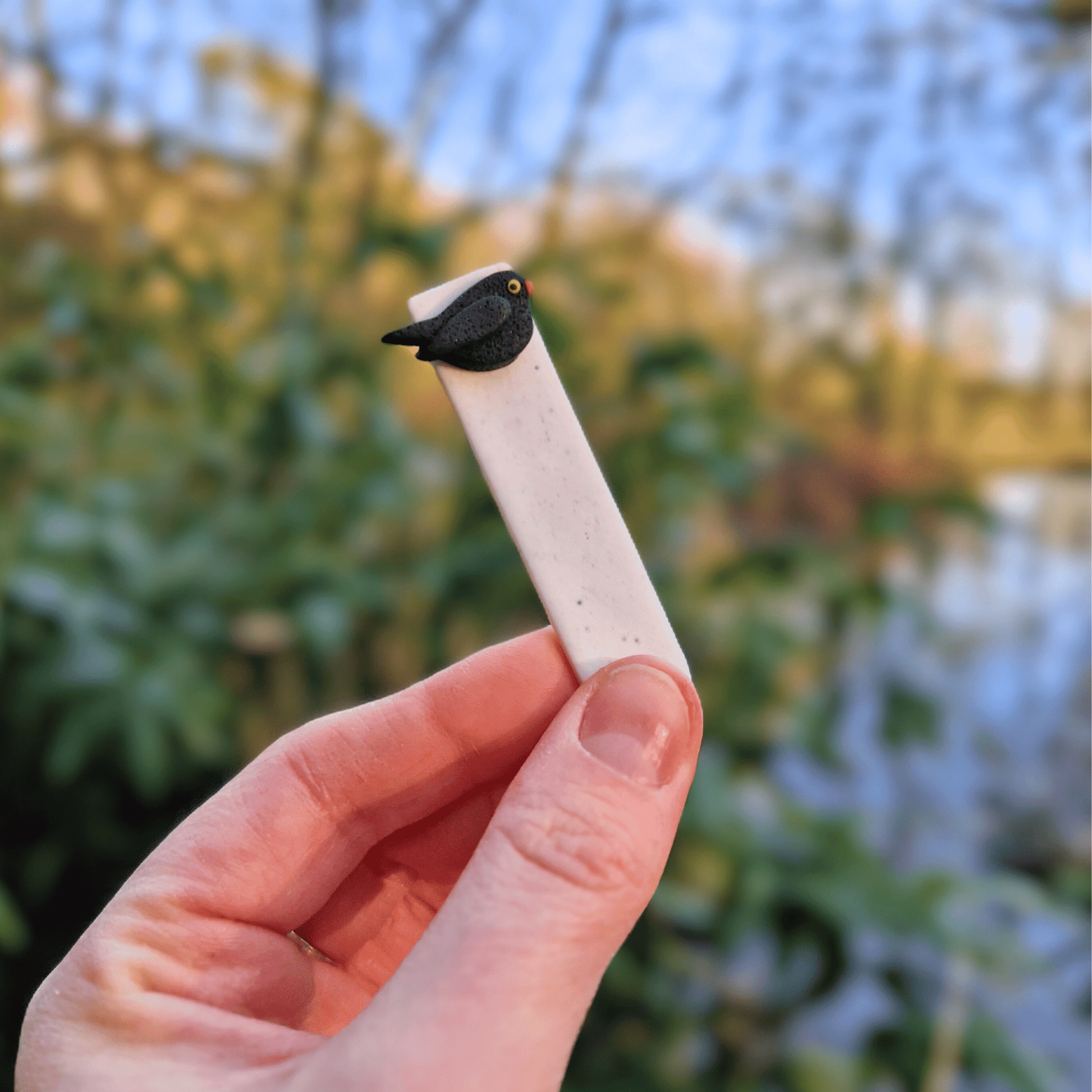 Blackbird British Bird Polymer Clay Decorative Plant Tag