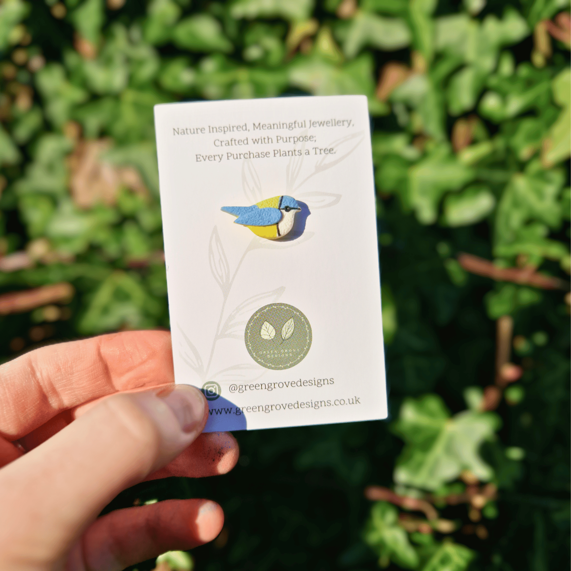 Vibrant and joyful, our Blue-Tit pin is the perfect adornment to any outfit, fabric accessory of bag! Celebrate our wonderful British wildlife by nesting this little bird on your outfit. Meticulously hand-crafted using polymer clay and secured onto stainless steel, tarnish-resistant pin blanks, our pins are secure and sure to elevate any outfit, fabric accessory or bag!