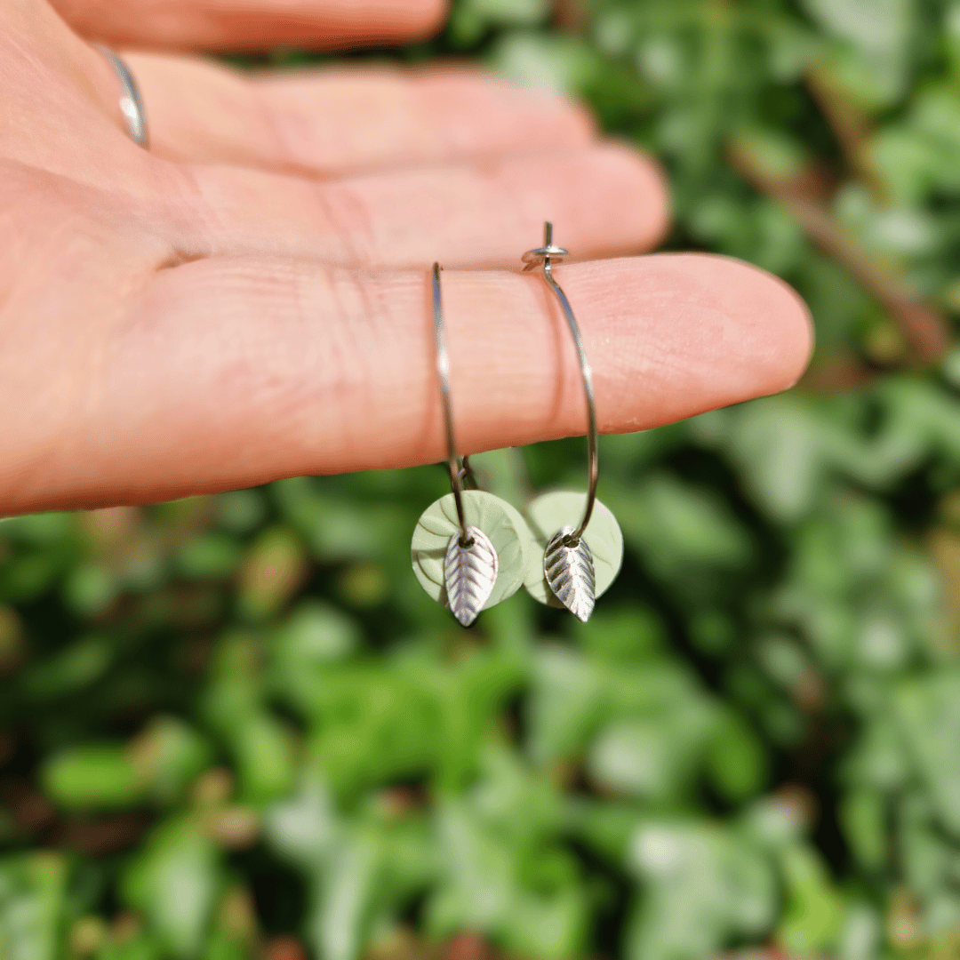 Dainty Leaf Polymer Clay Hoop Earrings - 3 colours