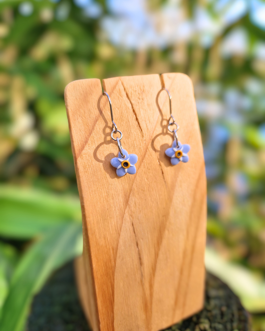 Dainty Polymer Clay Forget-me-not Drop Earrings