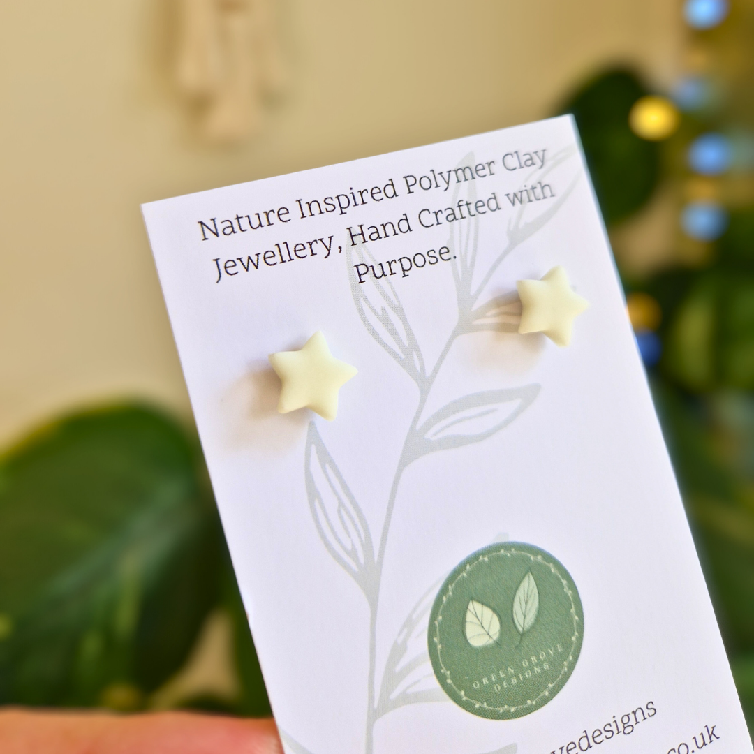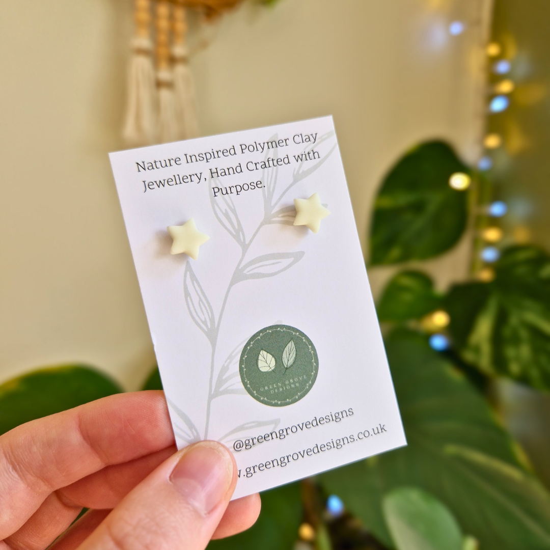 These studs are a throwback to the glow in the dark star stickers every kid had on their ceiling. Although our glow in the dark star studs are perfect for halloween parties and trick or treating, they can also be worn all year round! Each pair is crafted using polymer clay.
