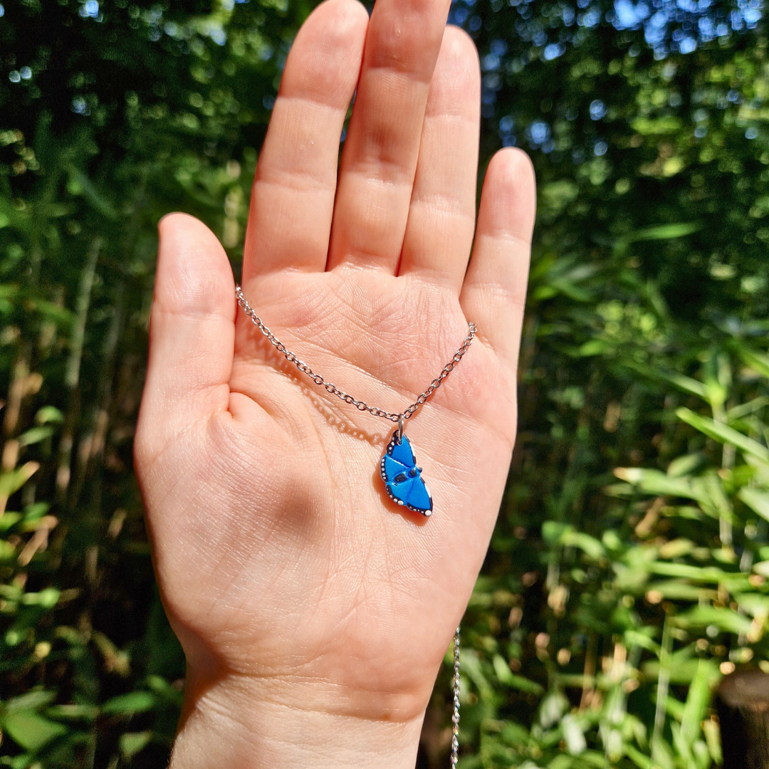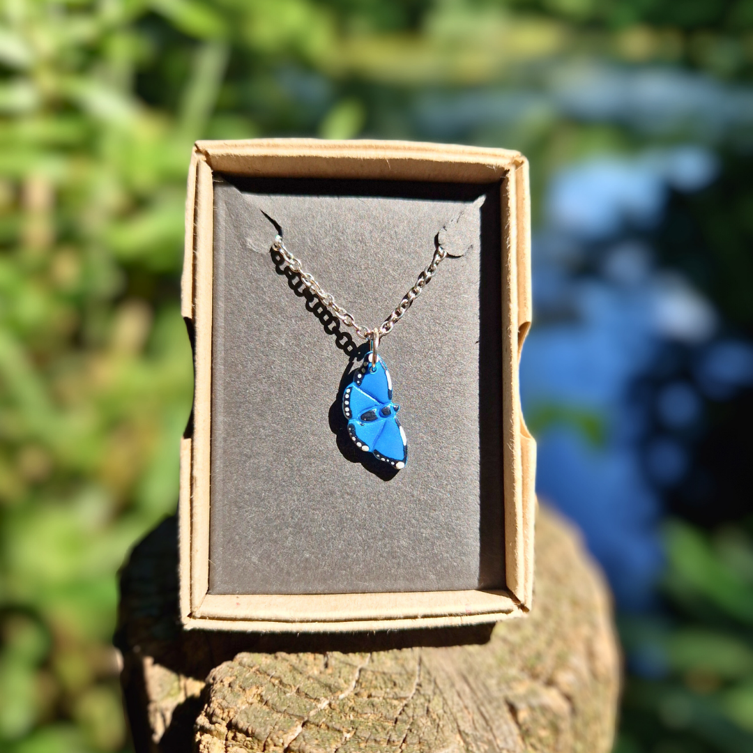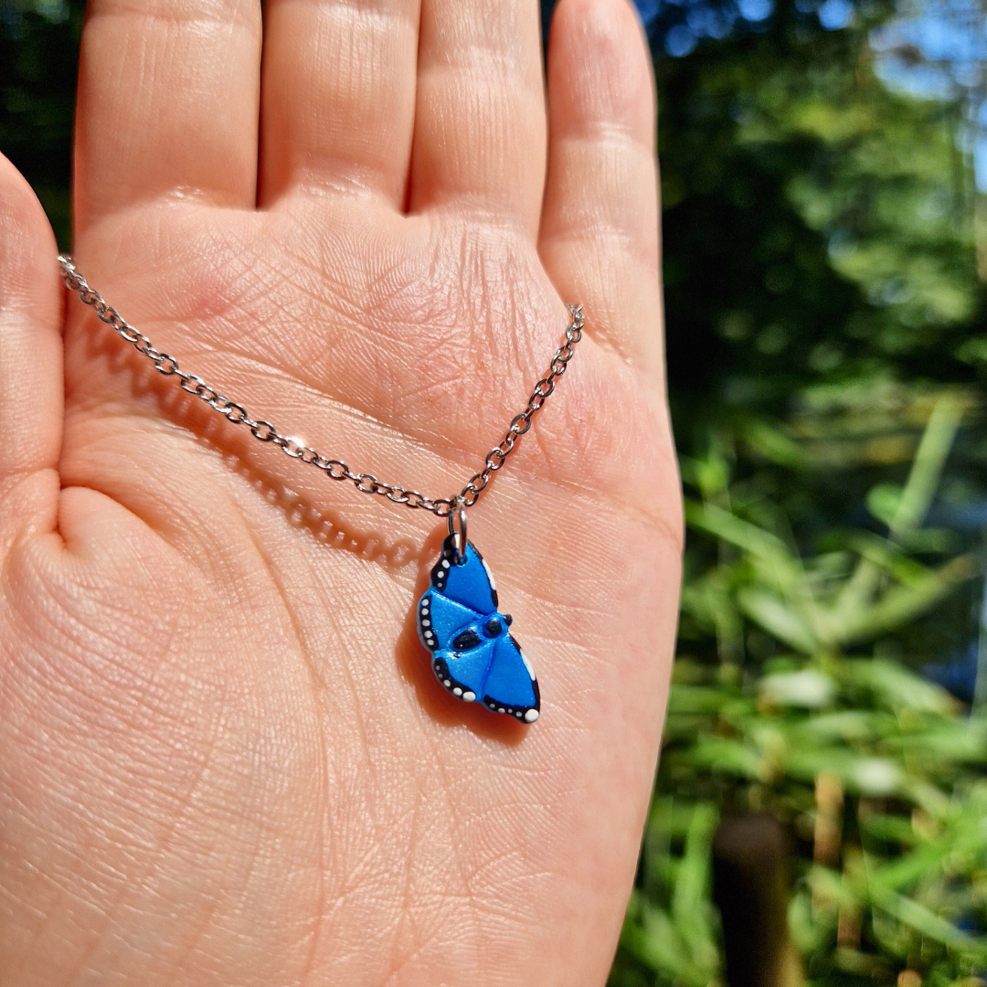 Hand Painted Blue Morpho Butterfly Necklace | 20"