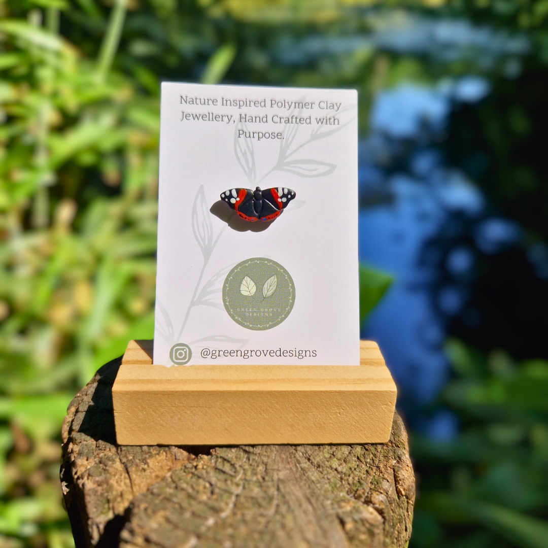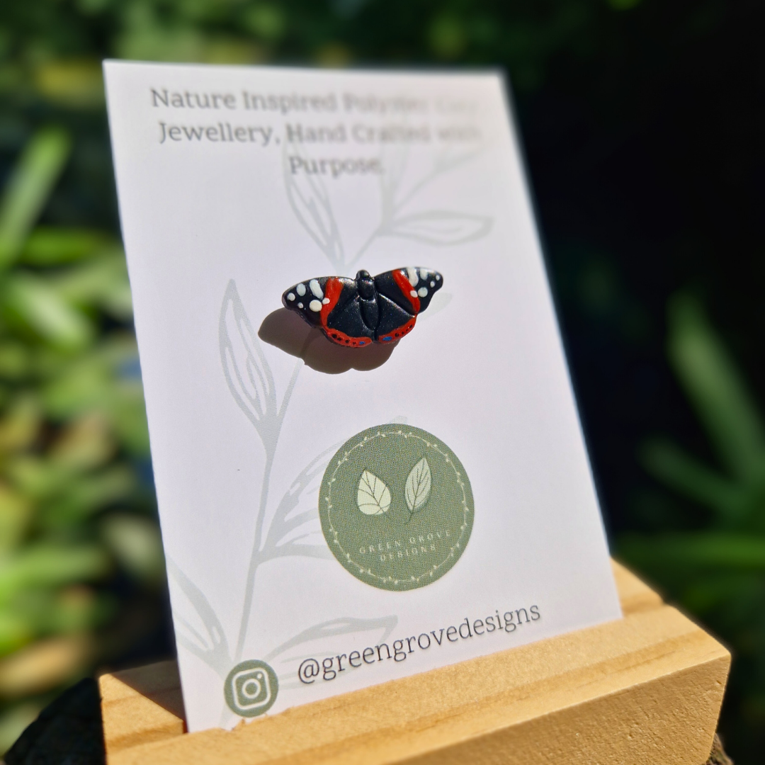 Our Red Admirals celebrate the beauty of our beloved native British butterflies, and now they can sit with you at all times. Each piece is crafted using polymer clay for the main background, which is then painted upon with a fine paintbrush to add exquisite details, finished with a layer of varnish. Our pin brooches make for a wonderful gift for gardening and nature lovers alike, ideal for placing on lanyards, cardigans, tote bags, etc.