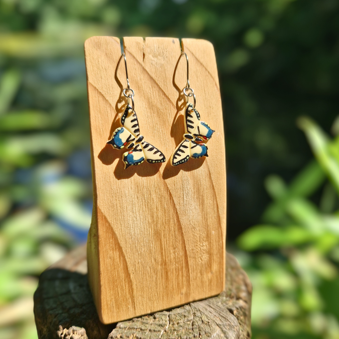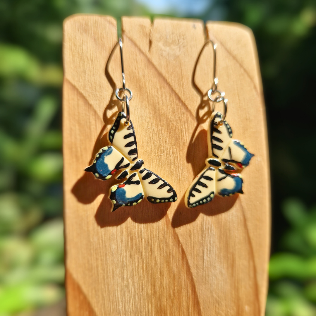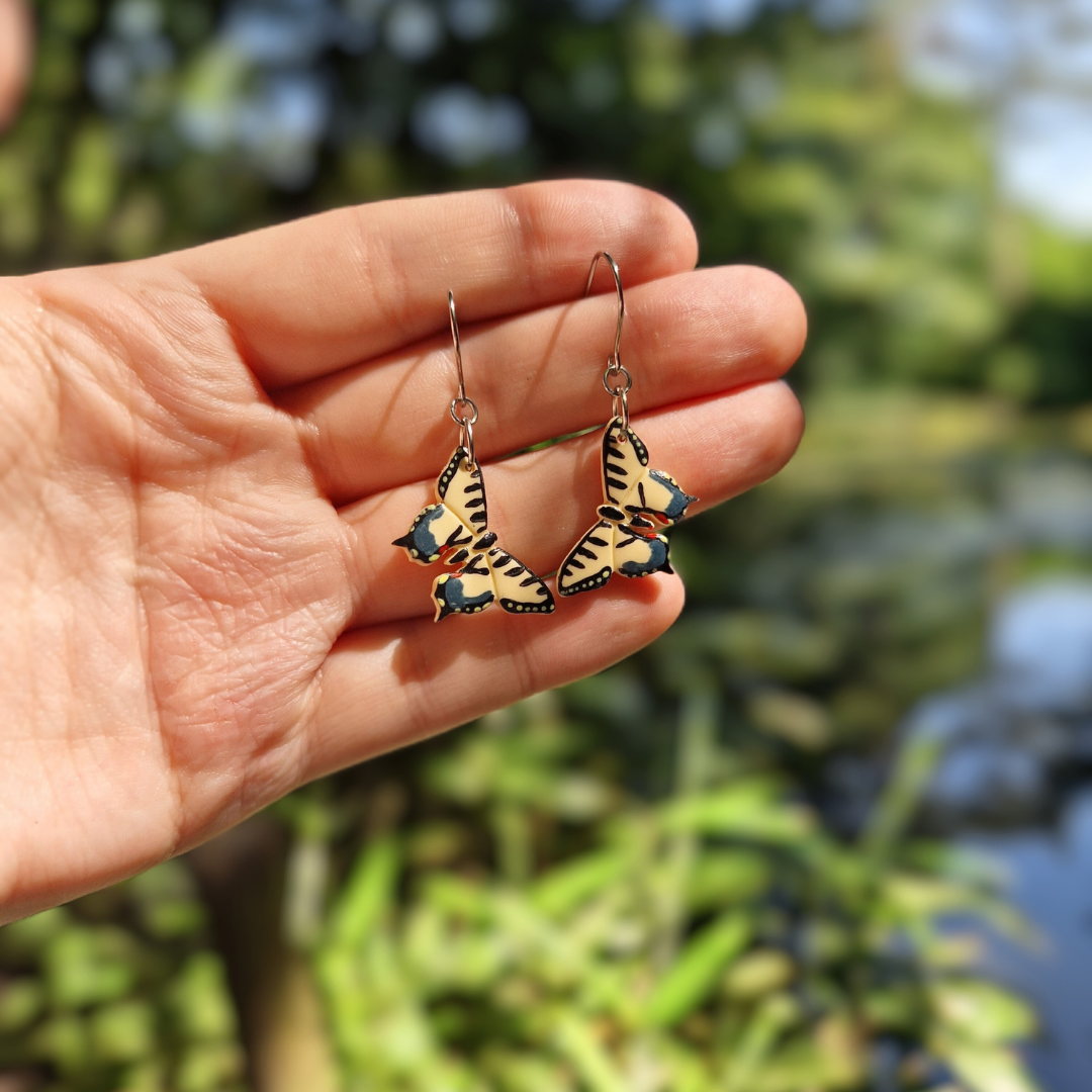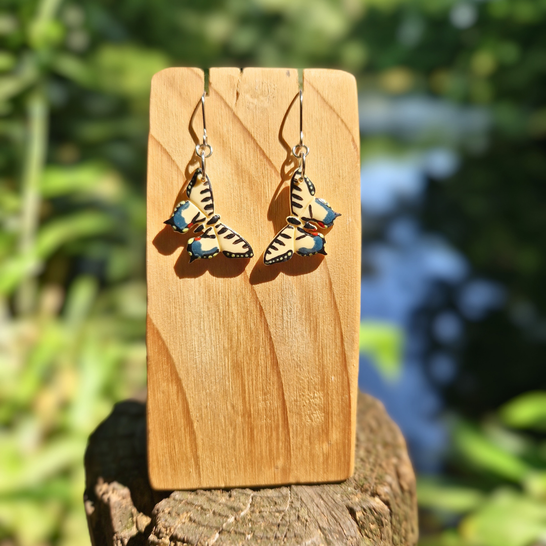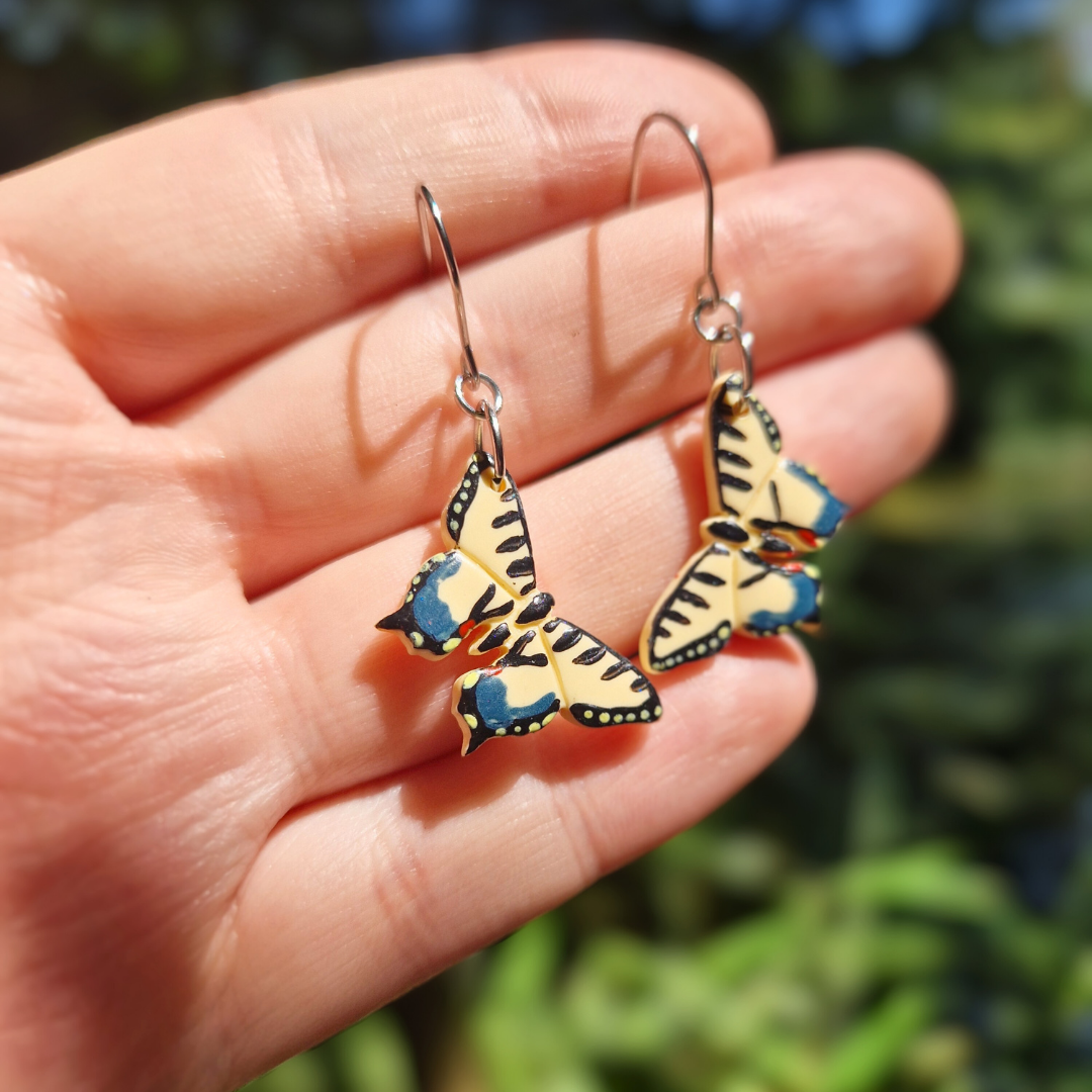 Hand Painted Swallowtail Tiger Butterfly Hook Earrings