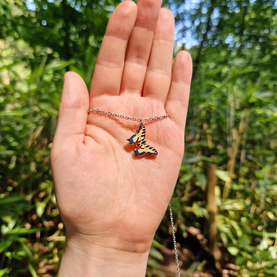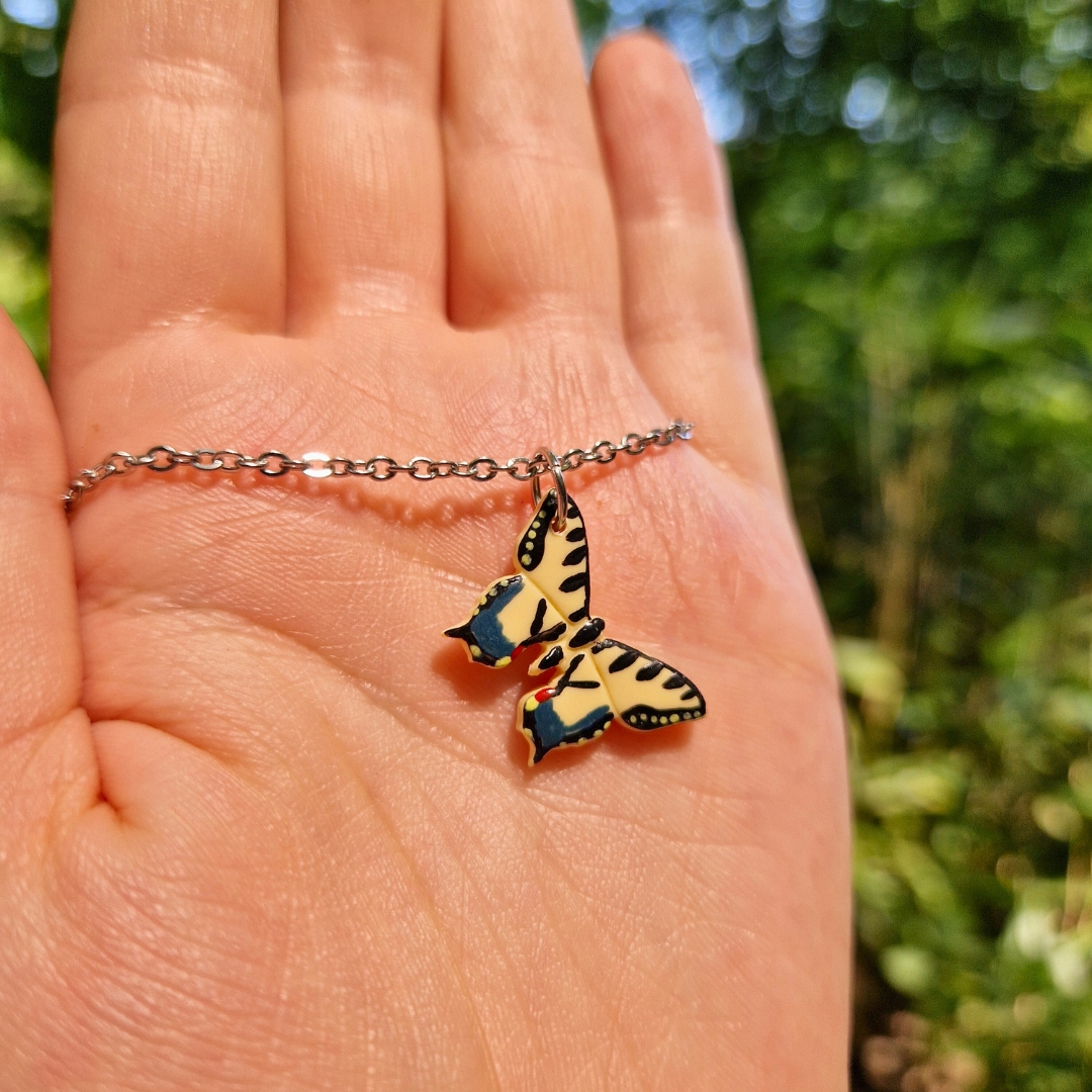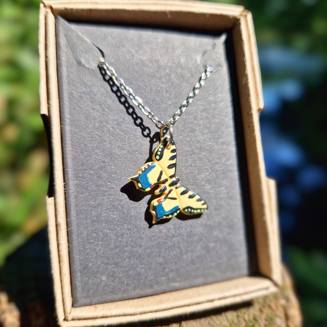 Hand Painted Swallowtail Tiger Butterfly Necklace | 20"