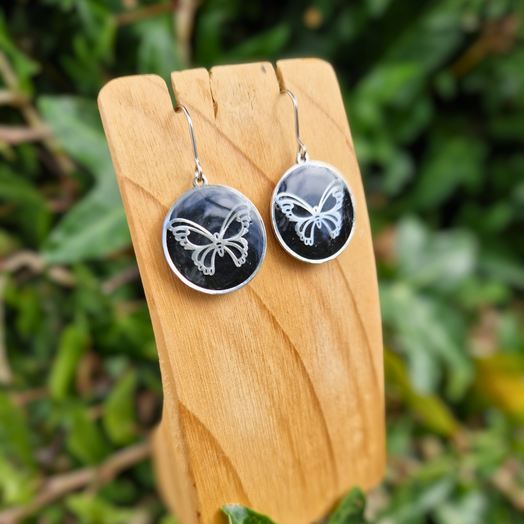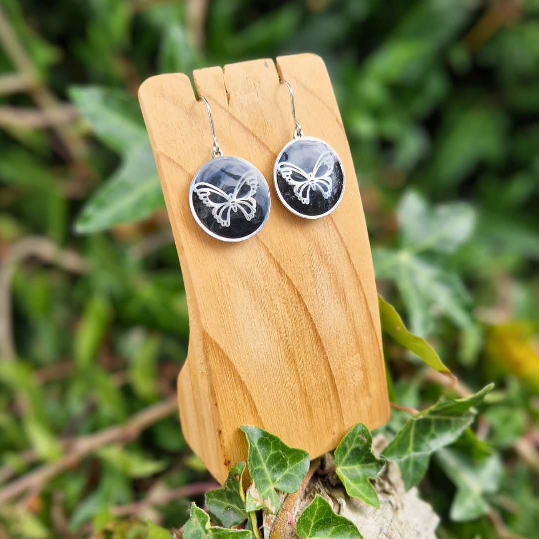 Polymer Clay and Resin Circle Frame Butterfly Hook Earrings