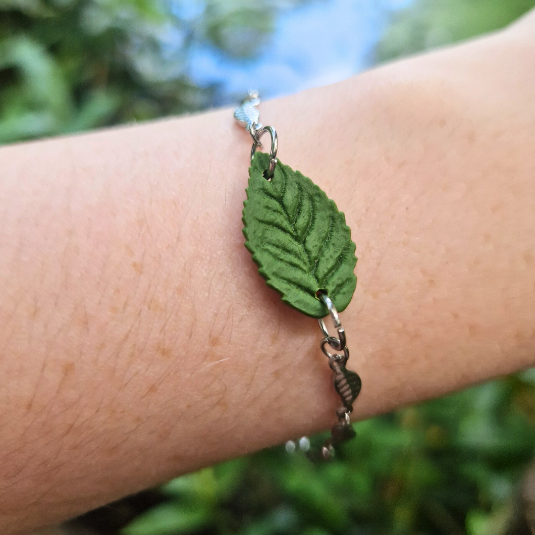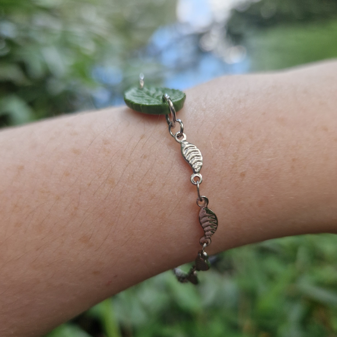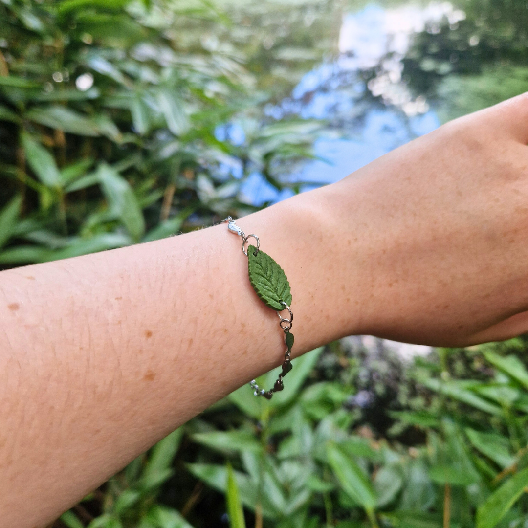 Our updated leaves are a new addition to our core collection! Celebrating the intricacies and details in nature, these leaves have been meticulously hand crafted with exquisite attention to detail using polymer clay, and finished with hypoallergenic stainless steel leaf cross charm bracelet.