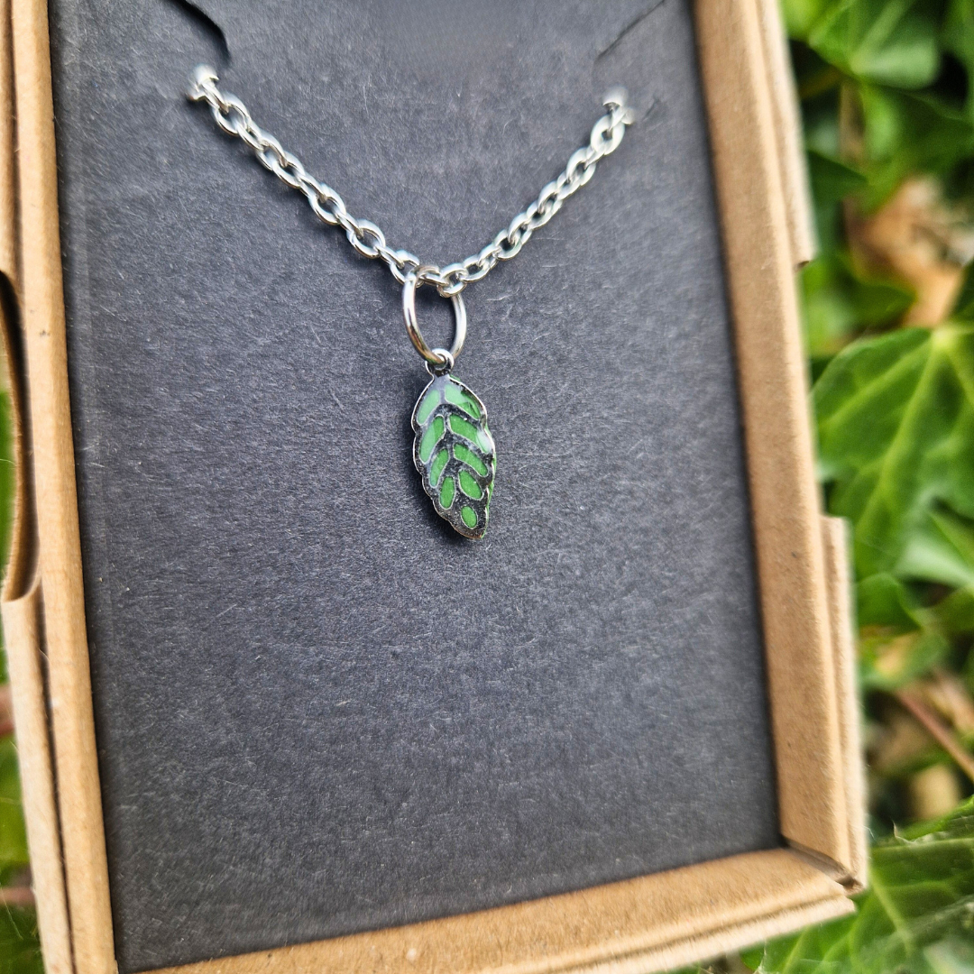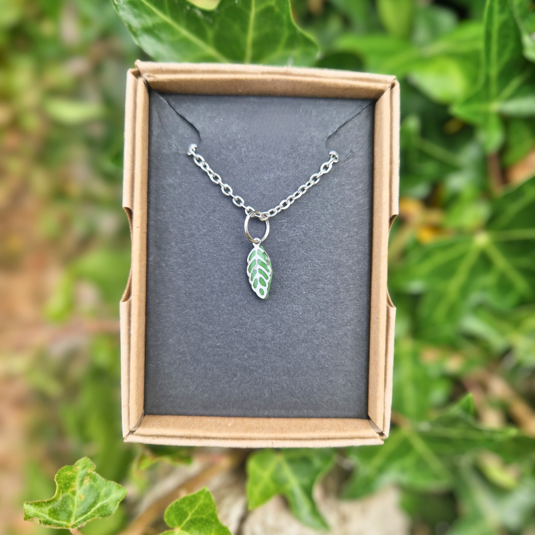 New to Green Grove Designs is this dainty necklace, featuring a gorgeous steel leaf charm on a polymer clay background, and topped with a layer of UV resin to give a stunning sheen finish. These teeny pendant necklaces have proven to be a bestseller already and are perfect for casual and smart/casual occasions, whilst being perfect for all-year-round. These are ideal for those who prefer minimalist, dainty jewellery. Matching earrings available!