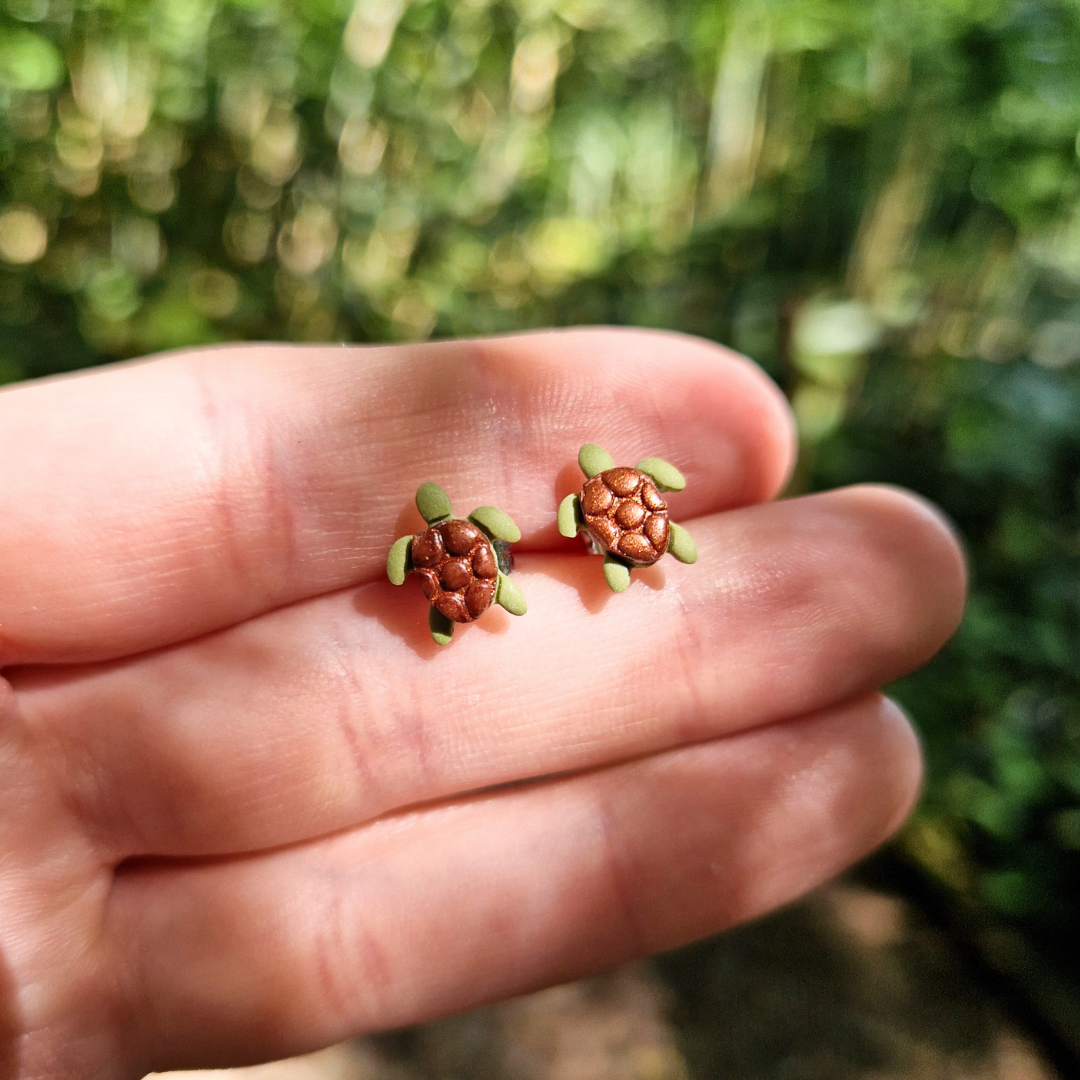 After many requests, we are thrilled to introduce our Sea Turtle stud earrings in ocean green and glistening bronze tones! These fun and detailed studs make for a great pair of Summer earrings, and are suitable for work and school, as well as those who prefer more subtle and minimal jewellery.