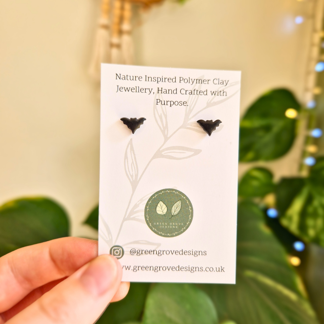 Our teeny bat studs are a halloween staple, crafted using polymer clay! These are the perfect everyday earrings for autumn and halloween, and are great for work, school, trick or treating and any spooky themed event!